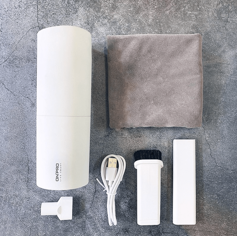 開車出遊如果在車上吃零食狂掉碎屑,免緊張!單手拿出迷你吸塵器就可以直接開始清潔,再也不怕零食碎屑掉滿車囉!